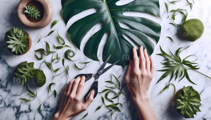 Руки подрезают комнатные растения, Ai generated image