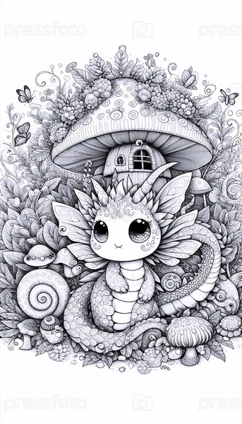 Красочная страница каваи со сложными фантастическими существами, Ai generated image