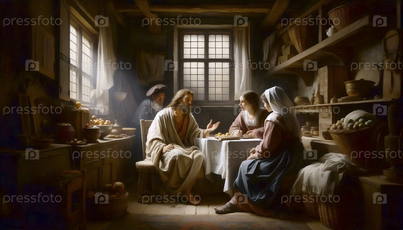 Христос в доме Марфы и Марии, голландский стиль Золотого века, Ai создал изображение