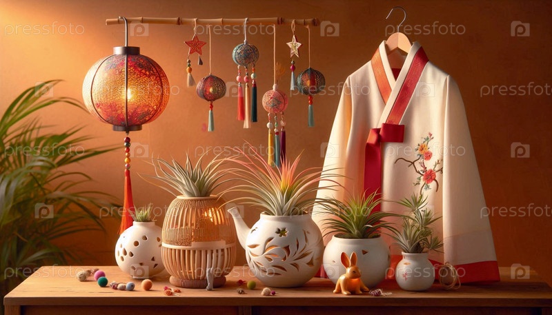 Интерьер в стиле бохо, стеклянные террариумы с воздушными растениями Tillandsia и увлажнителем, Ai generated image