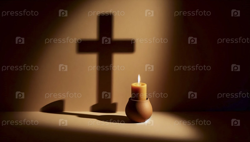 Простая глиняная свеча с деревянной тенью креста, Ai generated image