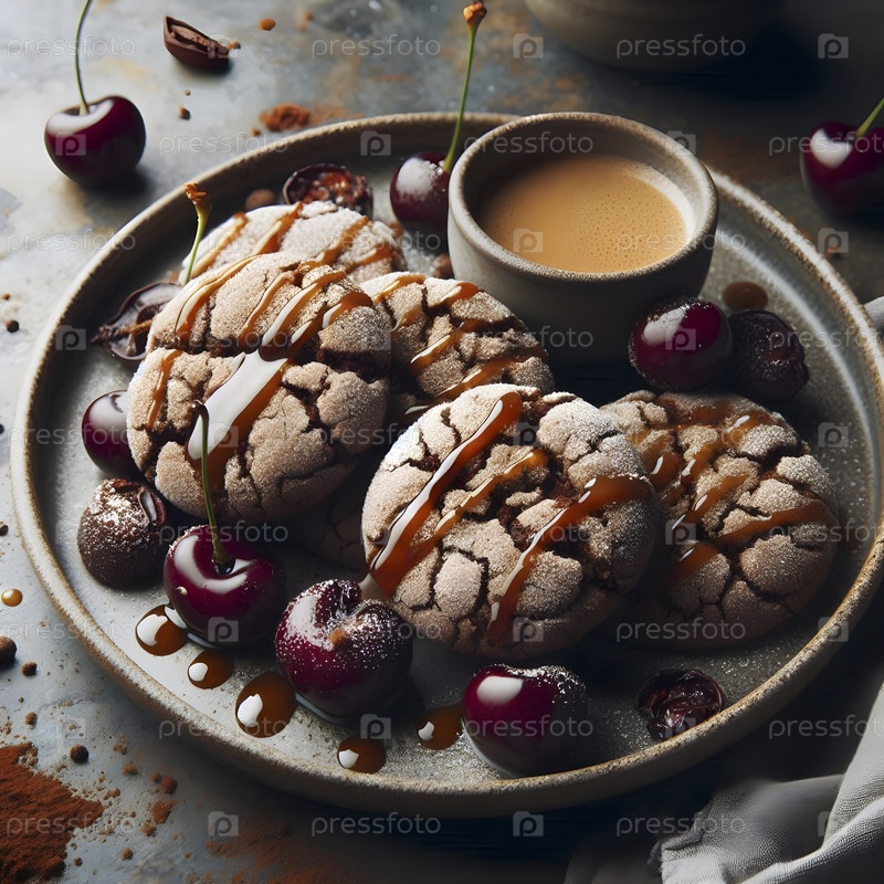 Upcycled coffee cherry flour cookies, Ai created image - печенье из муки для кофе с вишней
