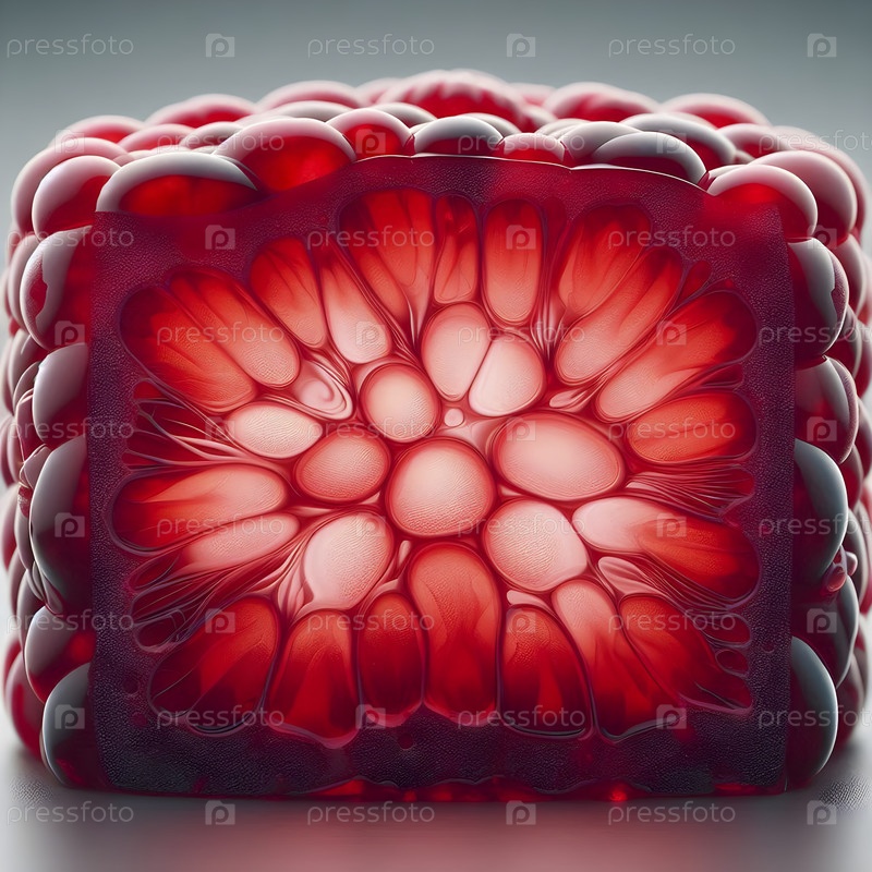 Поперечное сечение, раскрывающее ядро малинового геля, Ai generated image