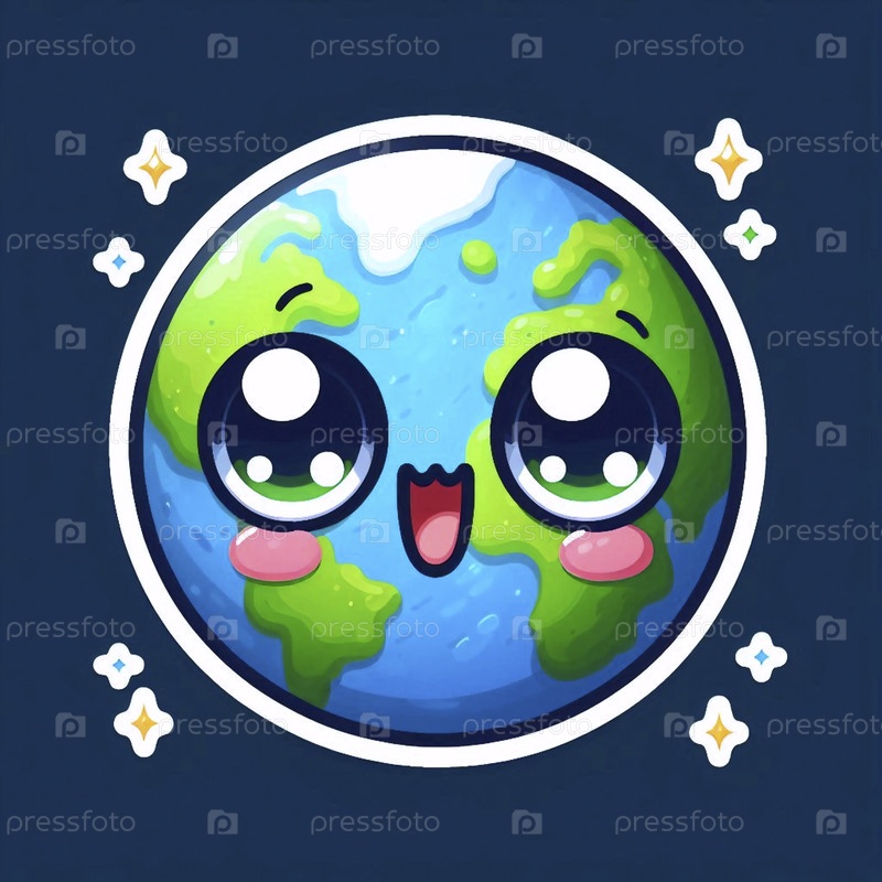 Милый стикер кавайи о удивительной планете Земля, Ai generated image