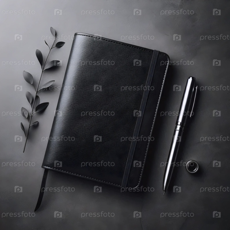 Темный кожаный блокнот с серебряной ручкой, Ai generated image