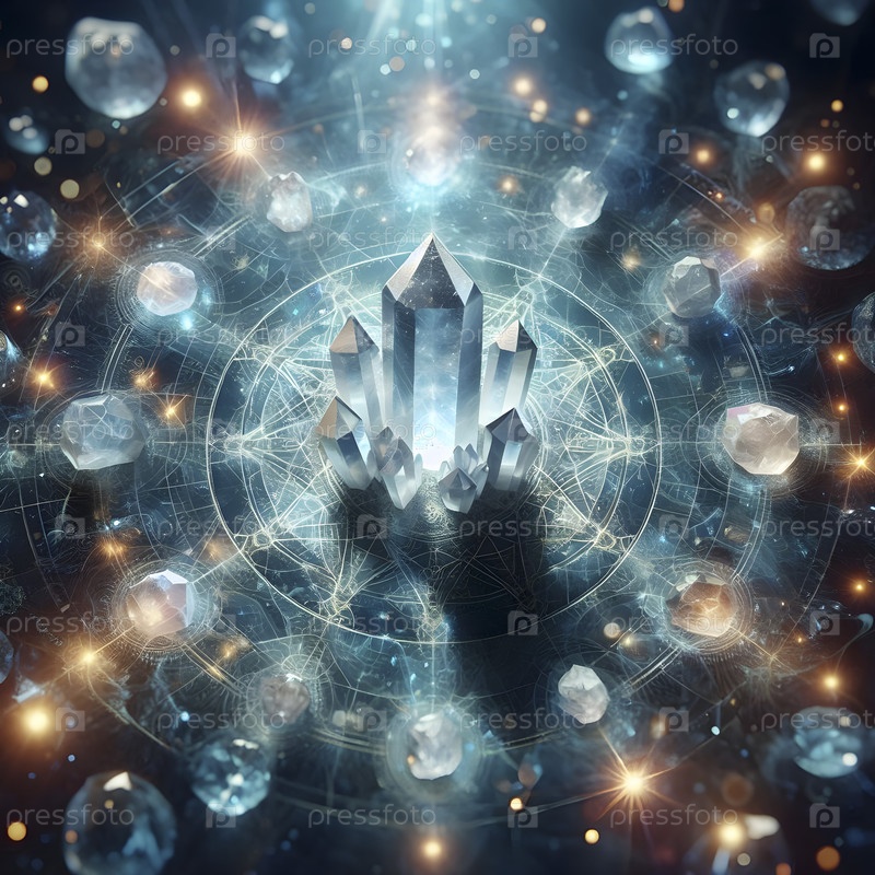 Кварцевая кристаллическая сетка, наложенная на точки чакры, Ai created image