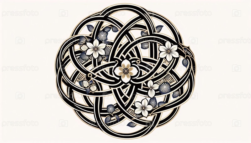 Японский дизайн обоев с повторяющимися узорами, Ai generated image