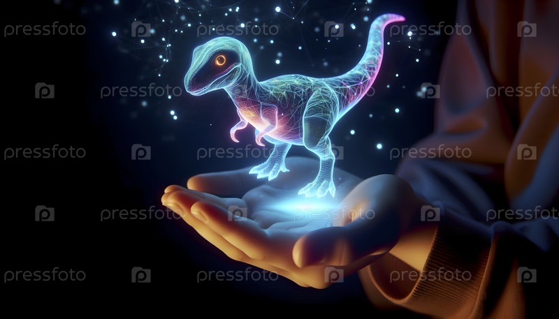 Светящийся голографический домашний динозавр, который реагирует на прикосновение, Ai created image