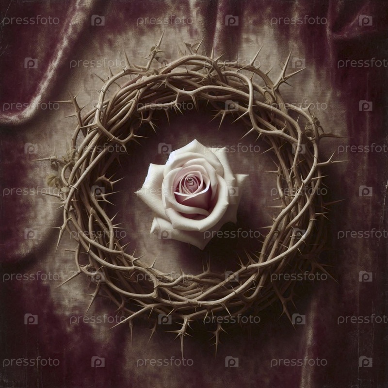Круг шипов с розовым бутоном в центре, Ай создал изображение
