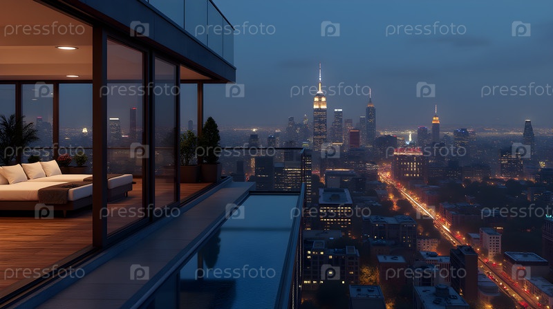 Luxury penthouse balcony, изображение создано с использованием AI