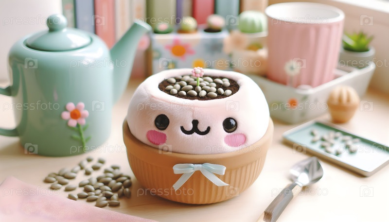 Плюшевая игрушка, наполненная семенами, которые вырастают в цветы, Ai created image