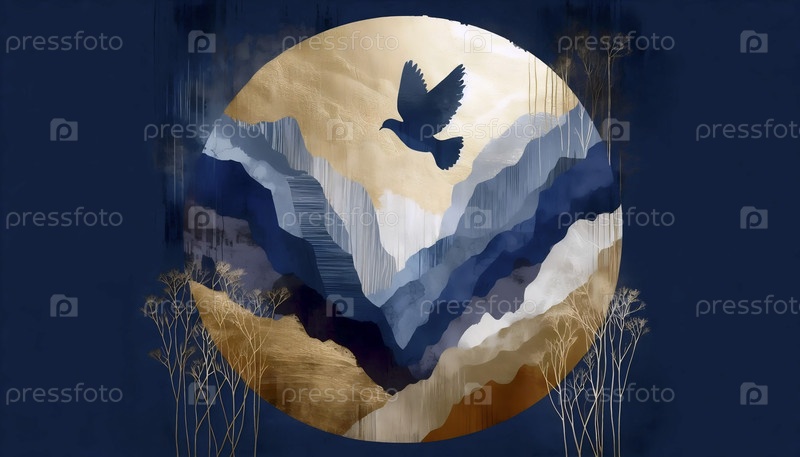 Дикая вера в художественную печать гор и летающего голубя, Ай создал изображение