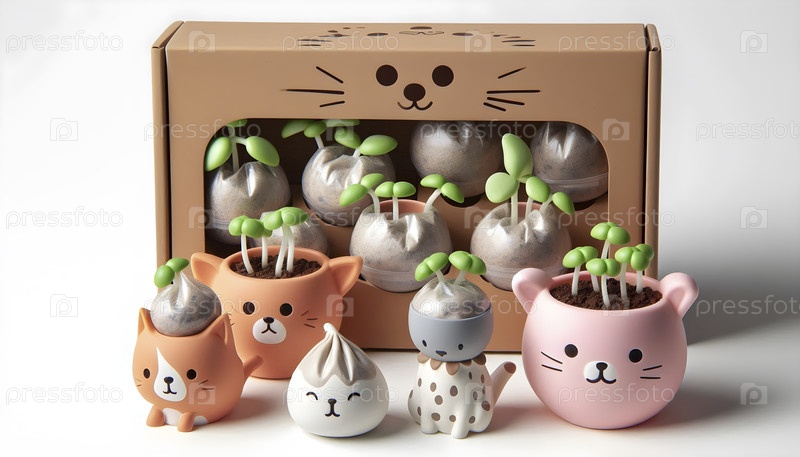 Комплект игрушек для выращивания растений с биоразлагаемыми pods, Ai created image