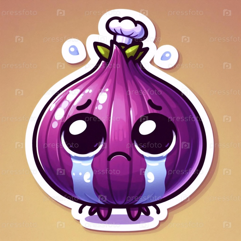 Милый стикер кавайи с плачущим луком, Ai generated image