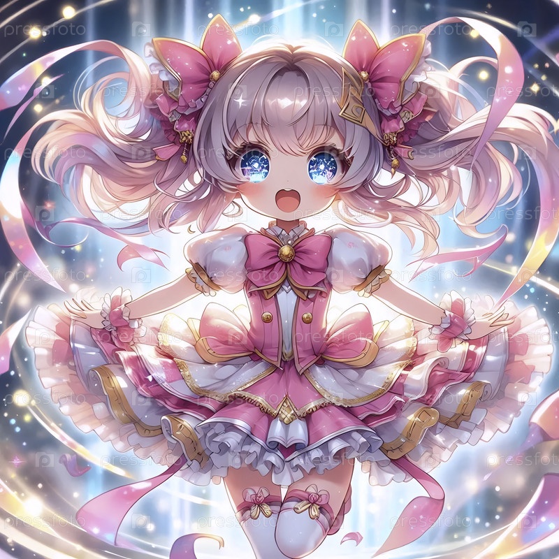 Подробная иллюстрация Чиби о волшебной трансформации девушки, Ai generated image