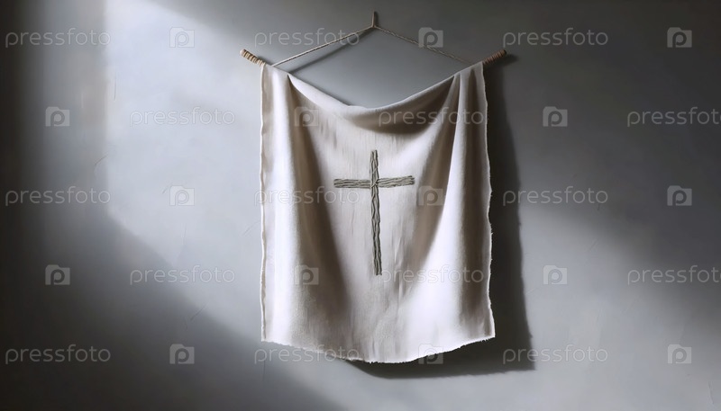 На стене из льняного дзен-бохо висит минималистический крест, Ai generated image