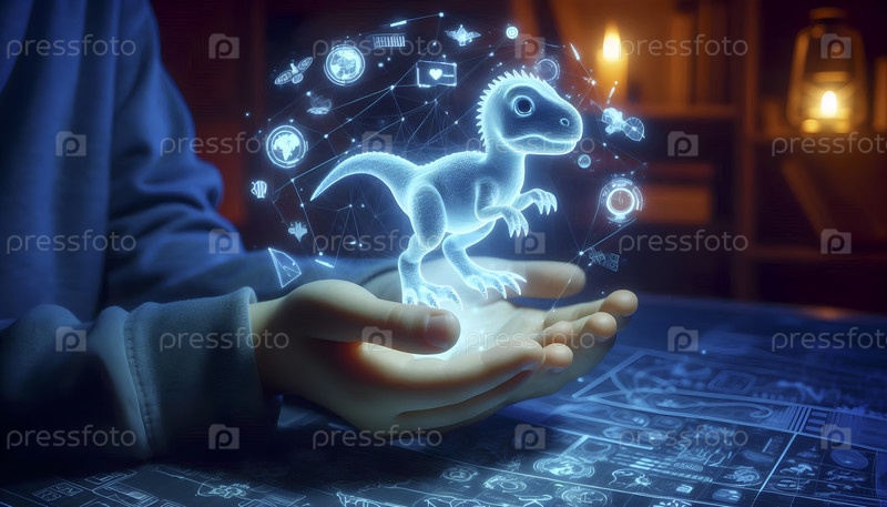 Светящийся голографический домашний динозавр, который реагирует на прикосновение, Ai created image