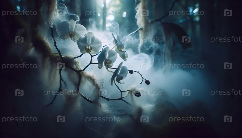 Призрачная орхидея плавает в тумане, Ai generated image A