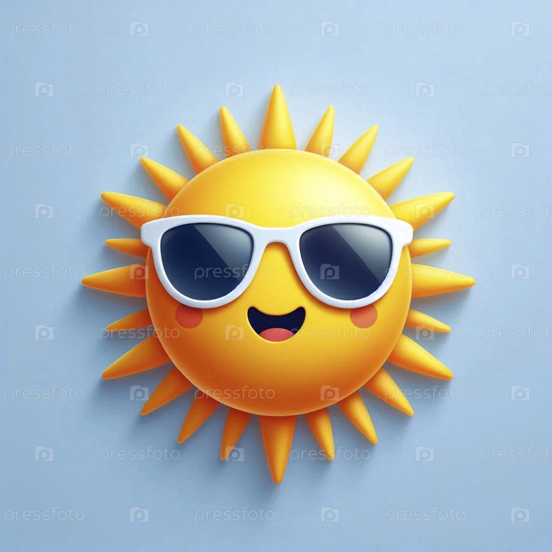 Улыбающееся солнце с солнечными очками, Ai generated image