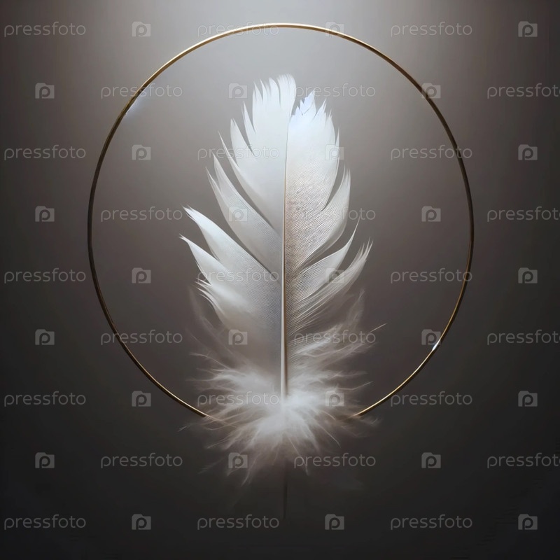 Одно плавающее перо с золотым кольцевым ореолом, Ai generated image