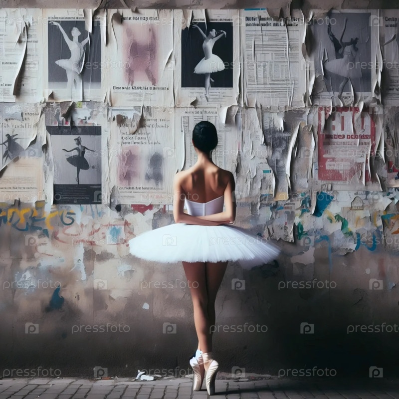 Балерина выступает с арабеском на заброшенной станции метро, Ai generated image