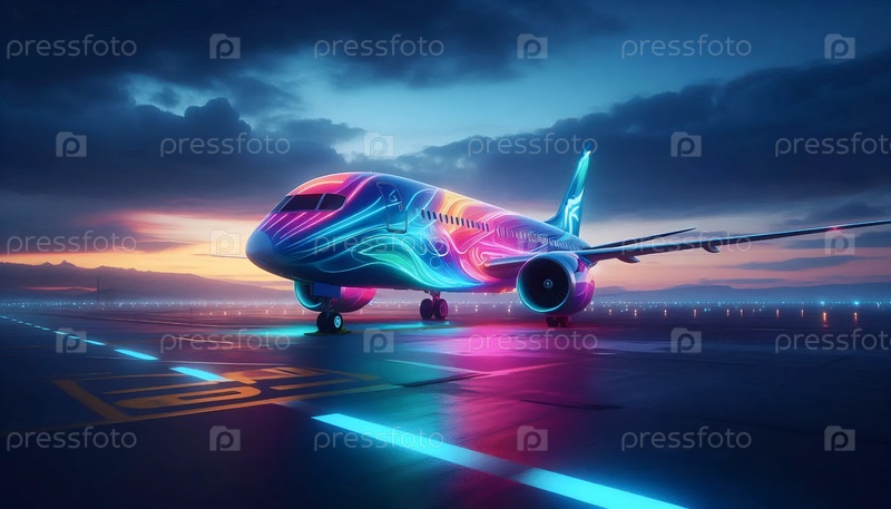 Ливреи фантастических авиакомпаний Neon Airways или Galactic Airlines, Ai generated image