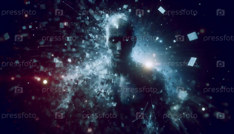 Цифровой ангел-проблемщик с пикселированными крыльями, Ai generated image