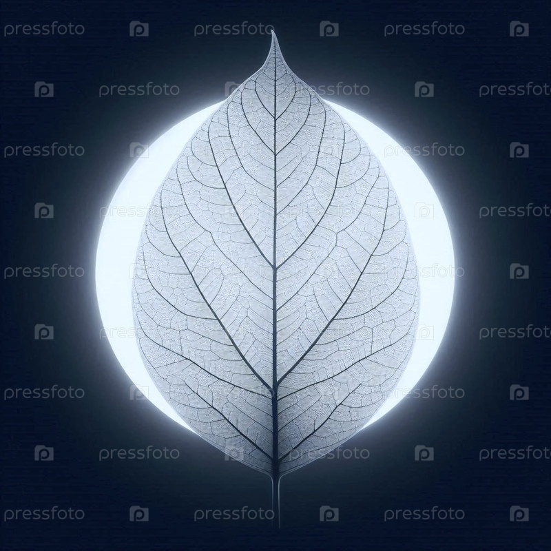 Один лист, подвешенный на чистом белом фоне с обратным освещением, чтобы показать каждую вену и клеточную структуру, Ai создал изображение