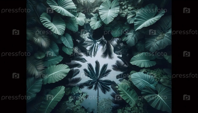 Отражения тропических листьев, Ai generated image