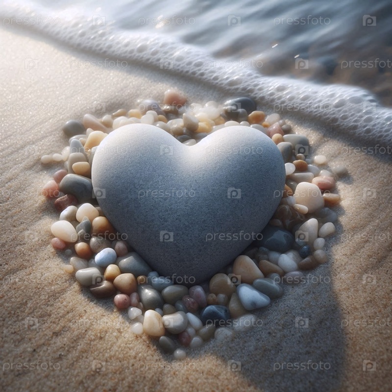 Камень в форме сердца на ложе речных камней, Ай создал изображение