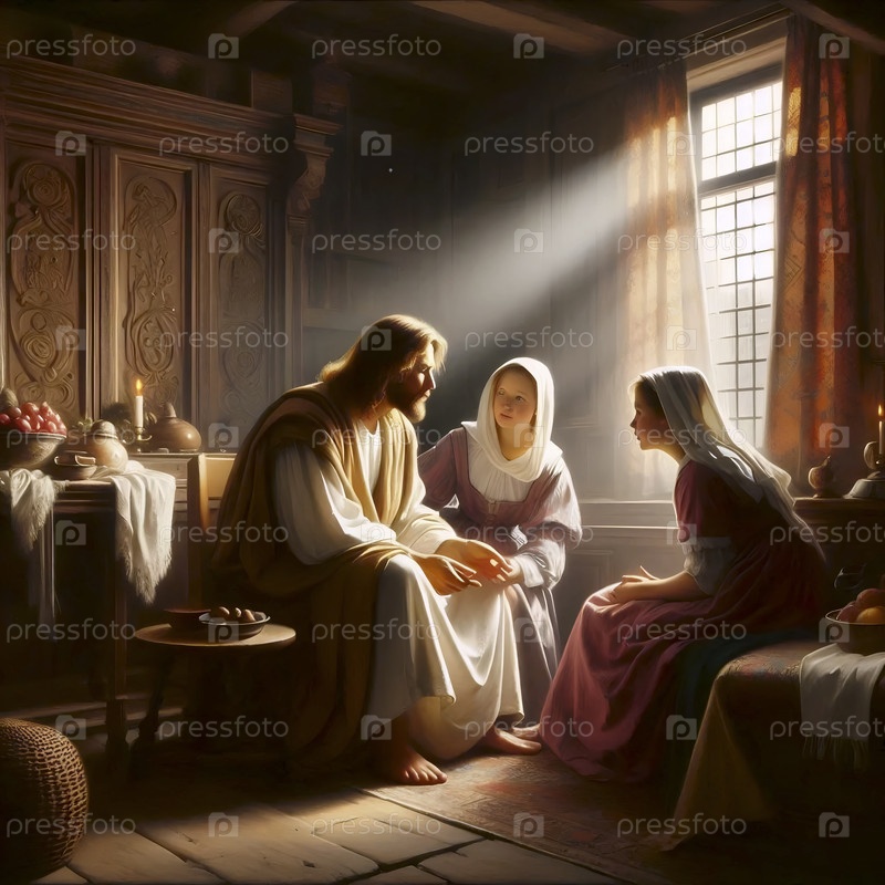 Христос в доме Марфы и Марии, голландский стиль Золотого века, Ai создал изображение