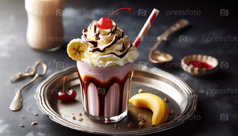 Винтажный молочный коктейль, подаваемый в классическом столовом стакане 1950-х годов Ai generated image