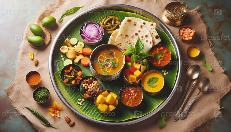 The Indian Thali Plant-Based Tradition, AI generated image Искусственный интеллект создал изображение
