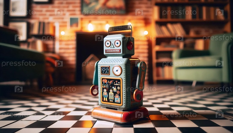 Винтажный оловянный игрушечный робот, Ai generated image