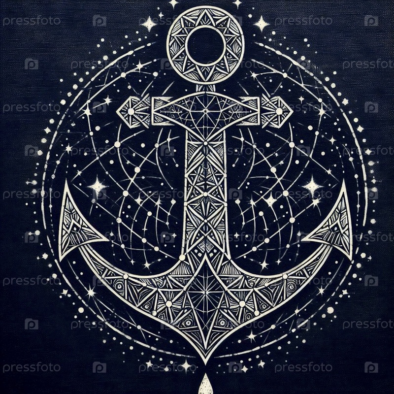 Геометрический символ якоря на тёмно-индиго текстурированном фоне, Ai generated image