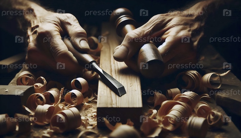Выветрившиеся руки мастера-ремесленника, тонко режущие детали в куске темного дерева, Ai создали изображение