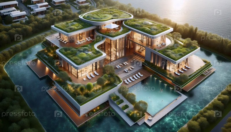 Эко-вилла с зеленой крышей, Ai generated image