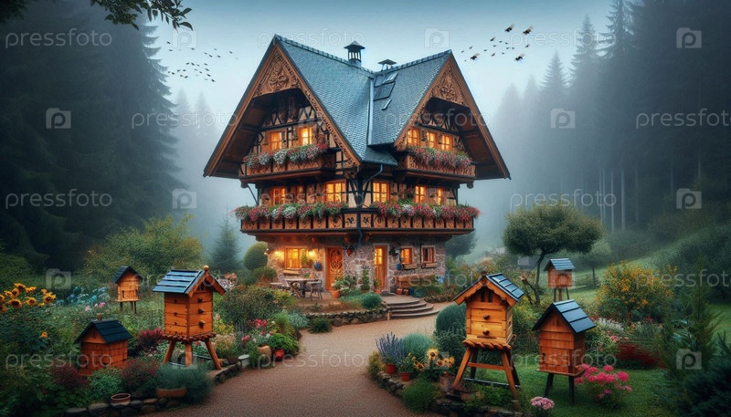Немецкий Timber-Frame Haus, ИИ сгенерированное изображение