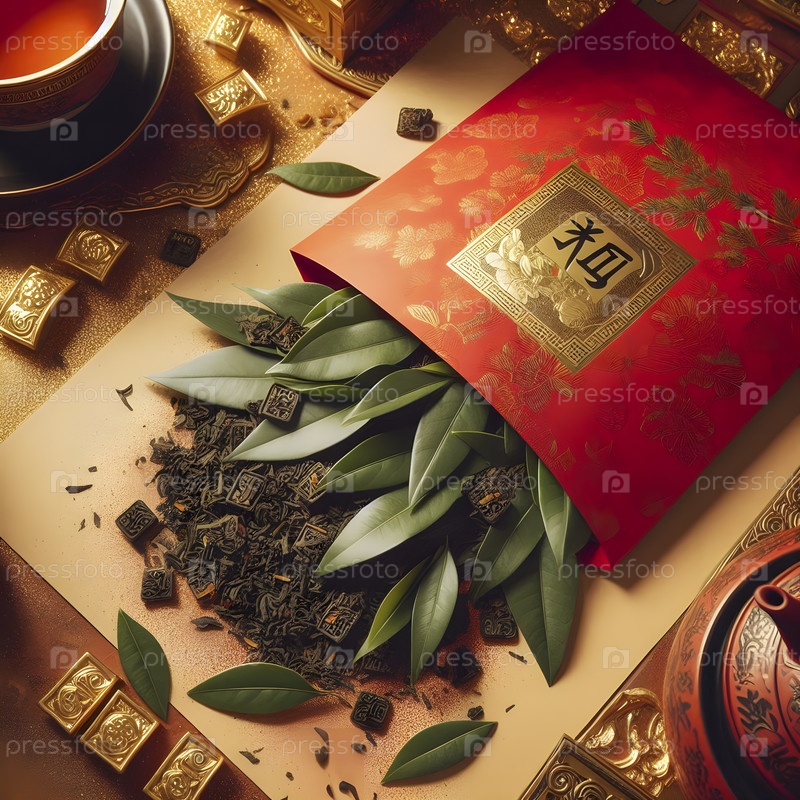 Красный конверт с чайными листьями, Ai created image
