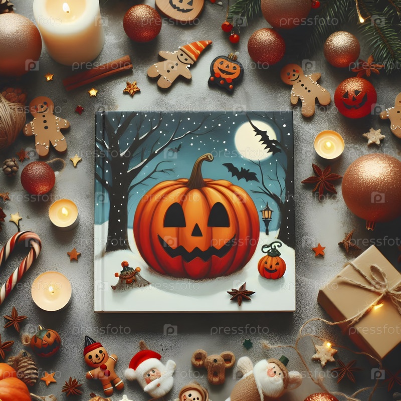 Праздничное Рождество и Хэллоуин детская книга, Ai created image