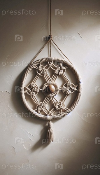 Круговая макрамовая стена, висящая с деревянным бисером, Ai generated image