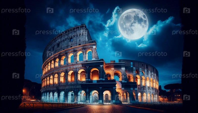 Колизей под драматическим освещением, Ai generated image