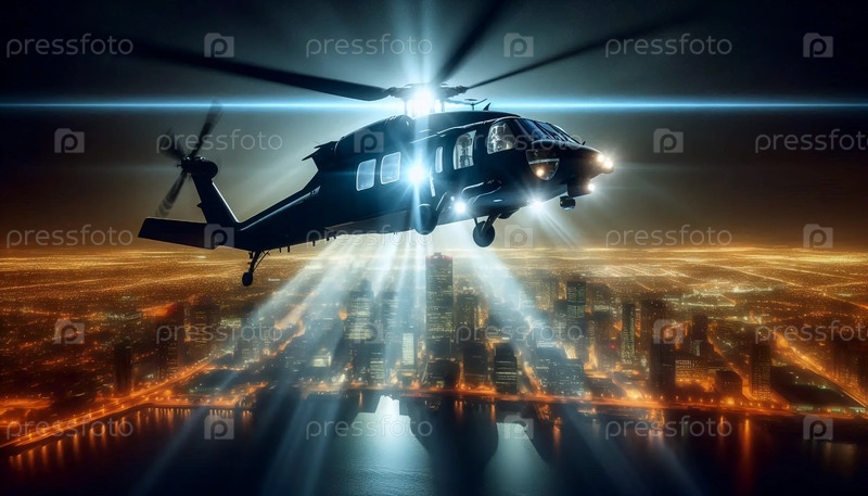Вертолет со светофором над ночным городом, Ai generated image