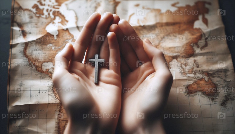 Руки человека за спиной, держа небольшой крест на карте, Ай создал изображение