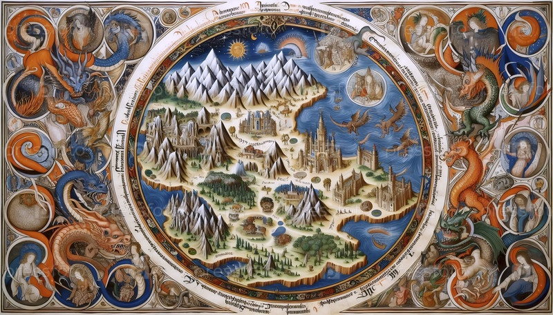 Средневековая карта Святой Земли с мистическими существами, Ai создал изображение