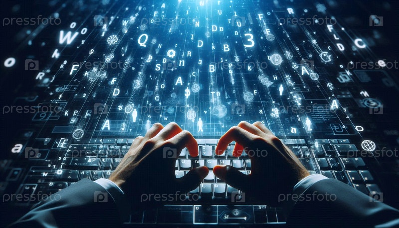 Руки, печатающие на клавиатуре в творческой атмосфере рабочего пространства, Ai generated image