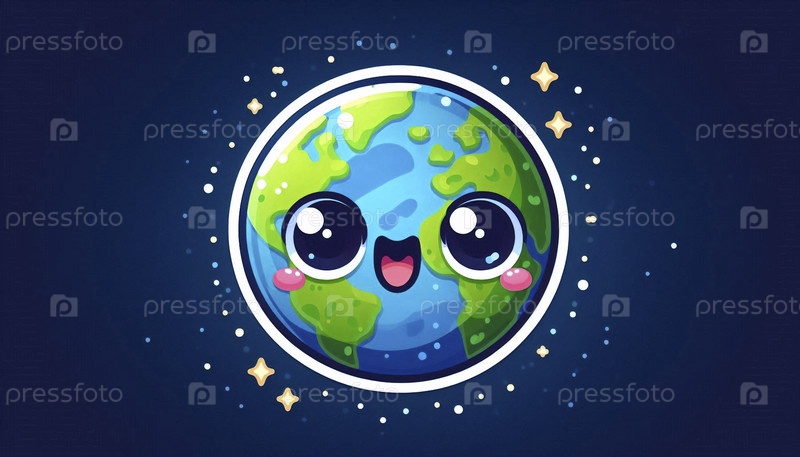 Милый стикер кавайи о удивительной планете Земля, Ai generated image