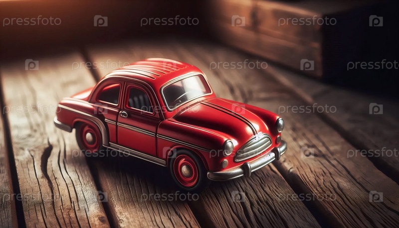 Винтажный советский игрушечный автомобиль на деревянном полу, Ai generated image