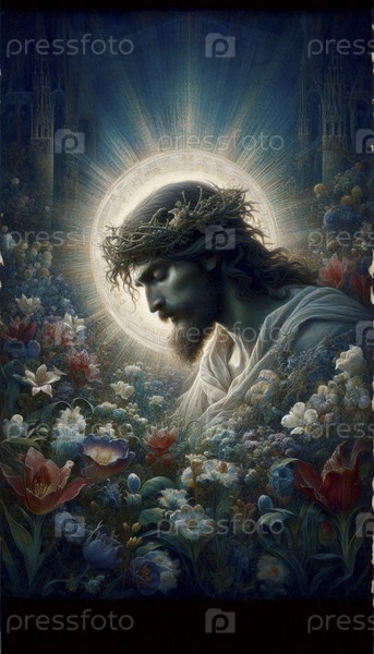 Прерафаэльский портрет Христа в Гефсимании, Ai generated image