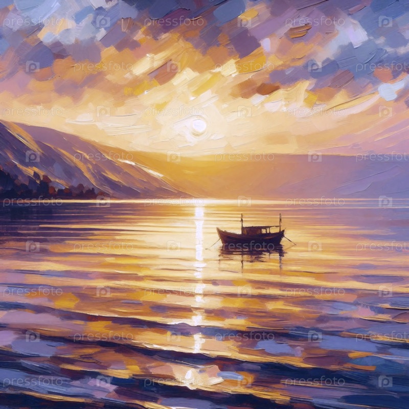 Галилейское море в золотое время, импрессионистский стиль, Ai generated image